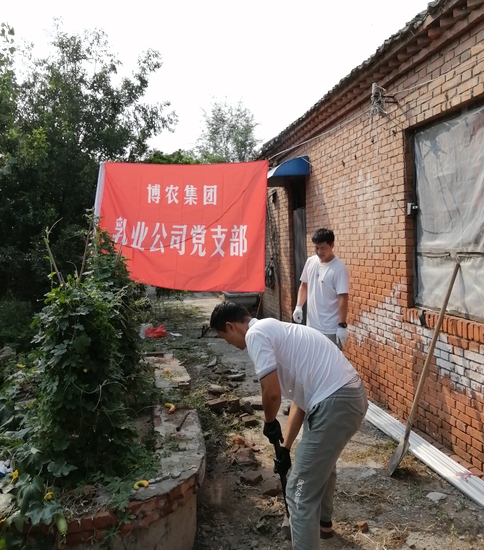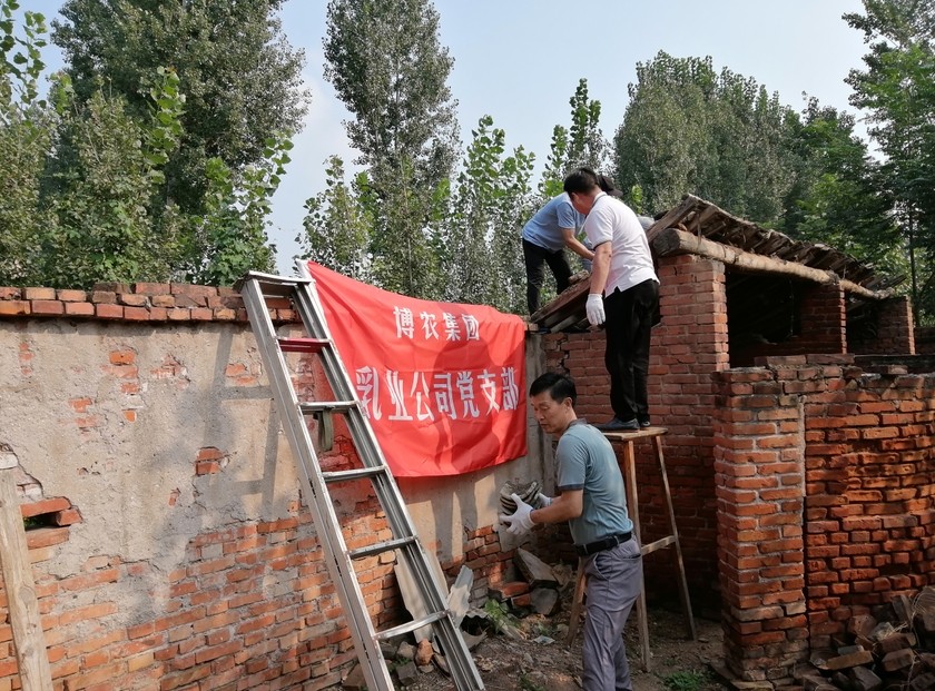 貧困戶魏澤美家是博農(nóng)乳業(yè)公司對口扶貧幫扶戶,公司黨支部了解到魏澤美家中廁所年久失修,給其生活造成不便的實際情況,經(jīng)過研究,決定發(fā)揮公司支部黨員水電、建筑等人才優(yōu)勢,組織黨員直接參與其廁所整修工作。30日下午,乳業(yè)公司黨員12人克服天氣炎熱、工作環(huán)境條件復雜的多重困難,全身心投入到廁所整修工作中,有的撤除房頂,有的焊接梁架,有的開挖水溝,有的連接電路,用整整一下午時間,完成了房頂撤除更換、連通水電的任務,幫扶工作受到貧困戶魏澤美的交口稱贊。